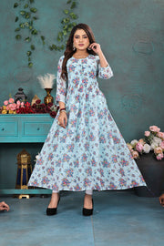 Sky Blue Multicolor Floral Georgette Gown